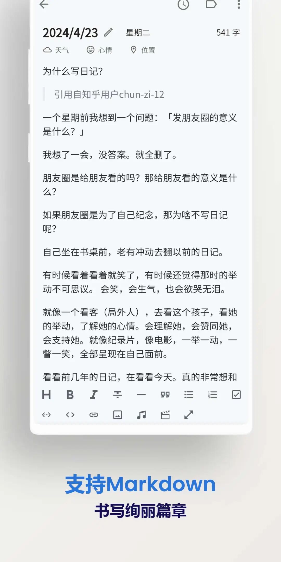 多种格式导出: 支持将日记导出为多种格式的文件,如PDF、Word、HTML等。 文字、图片分享: 支持将日记内容以文字或图片的形式分享到社交媒体或其他应用。