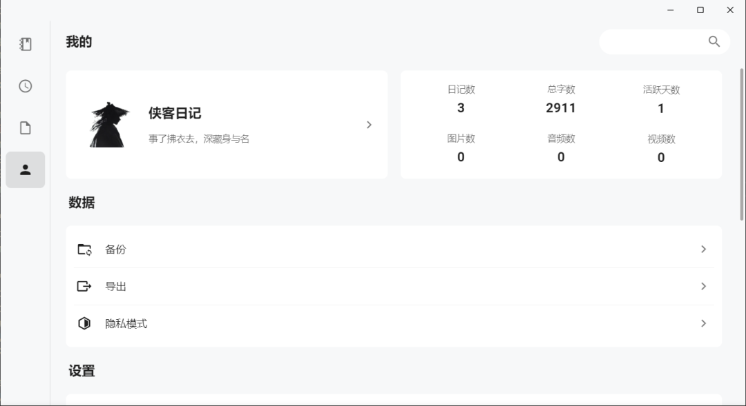 侠客日记适用于需要记录生活、工作、学习等各种场景的用户。它支持多平台使用,无论是在Windows、Android、macOS、Web还是Linux上,用户都能随时随地记录自己的所见所闻、所思所感。同时,其丰富的功能特性也满足了用户对于日记应用的多样化需求,如隐私保护、多媒体支持、数据导出等。