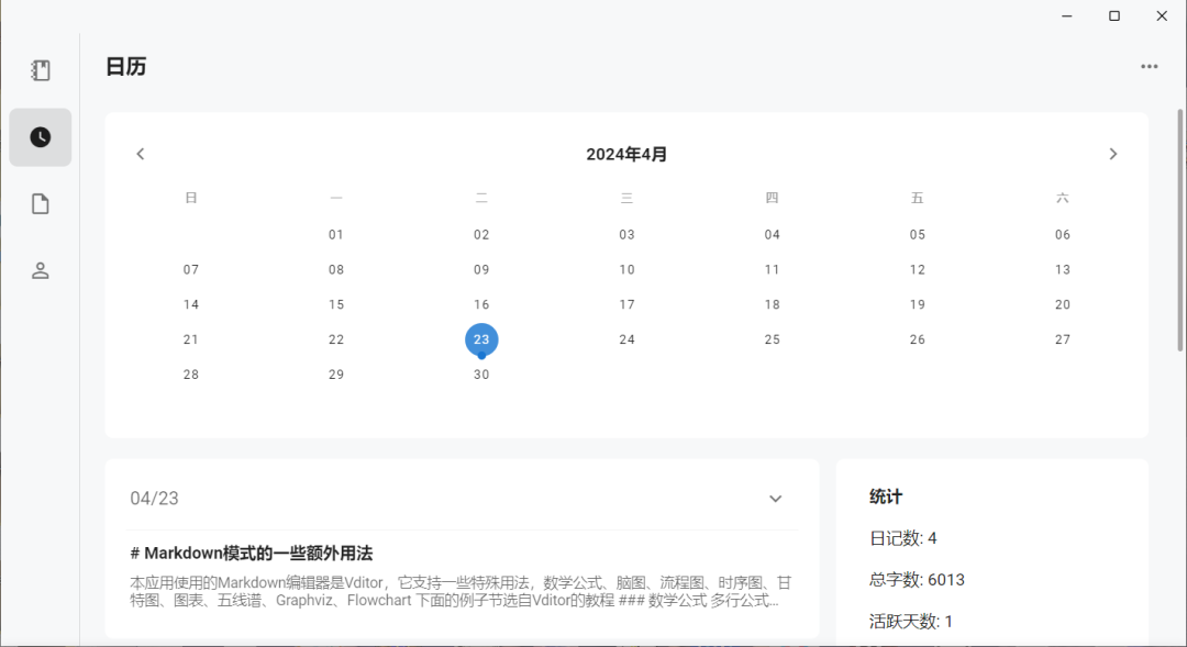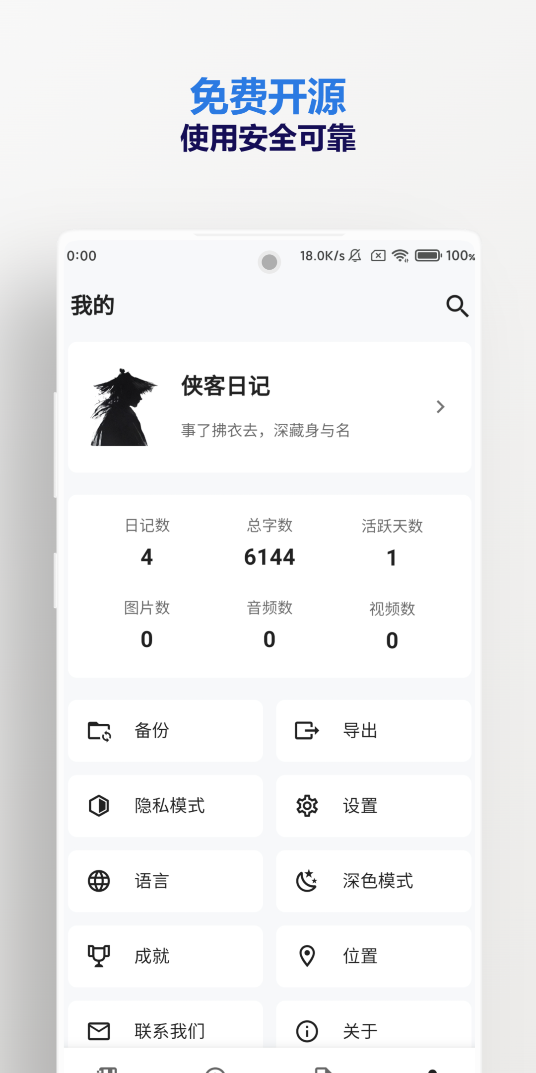 侠客日记是一个开源、跨平台的本地日记应用,使用MAUI Blazor构建。它不仅是一个记录生活点滴的工具,更是用户书写个人江湖传说的秘籍。
