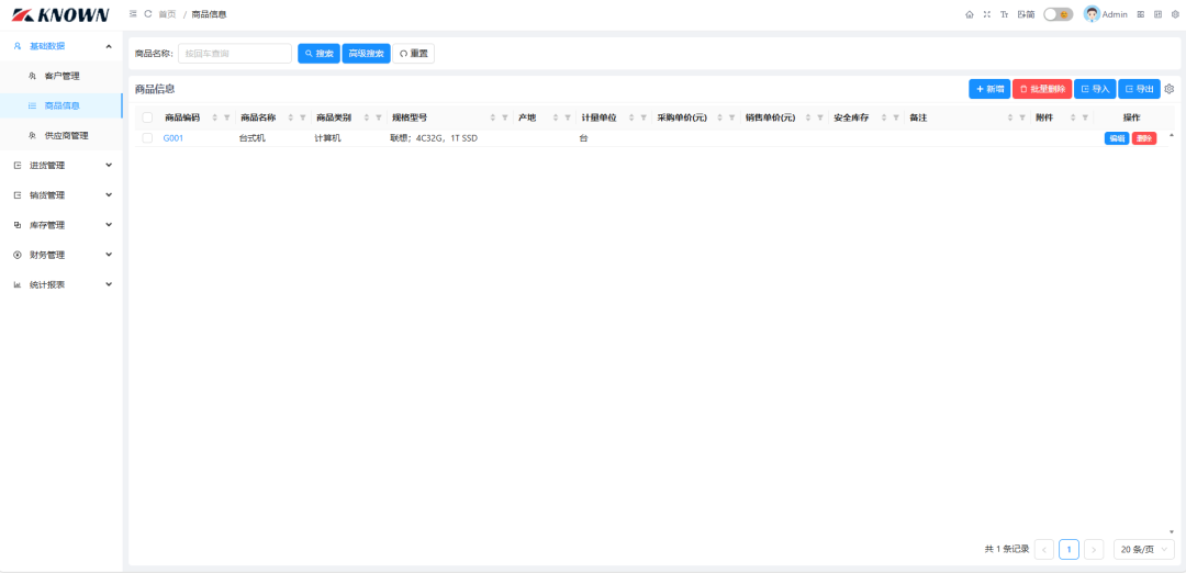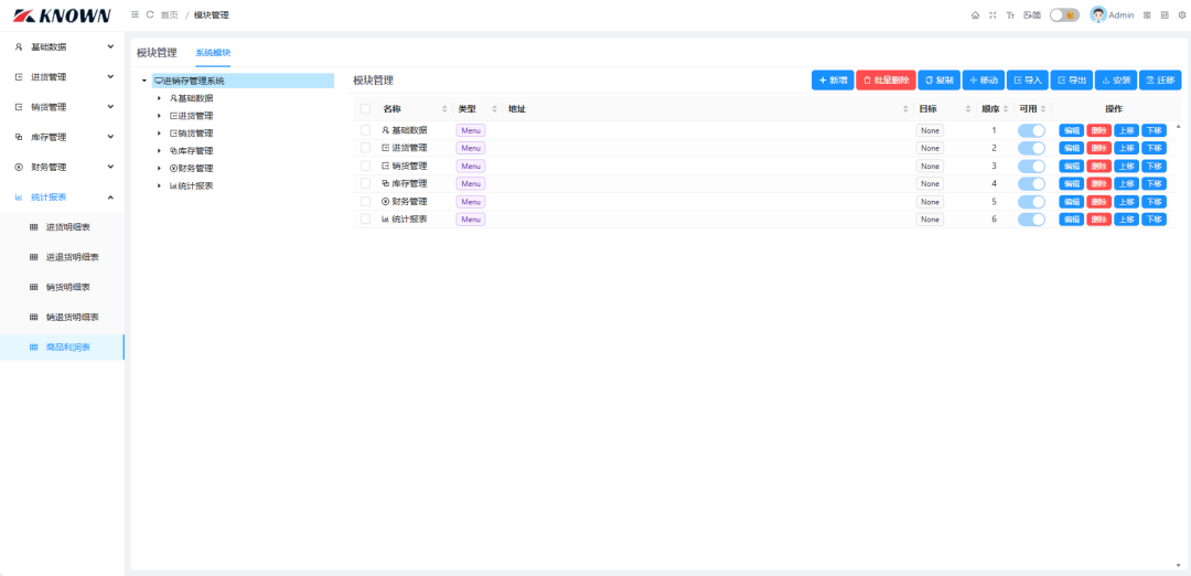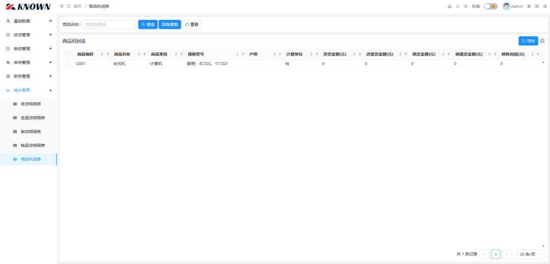 统计报表:包含进货明细表、进退货明细表、销货明细表、销退货明细表。