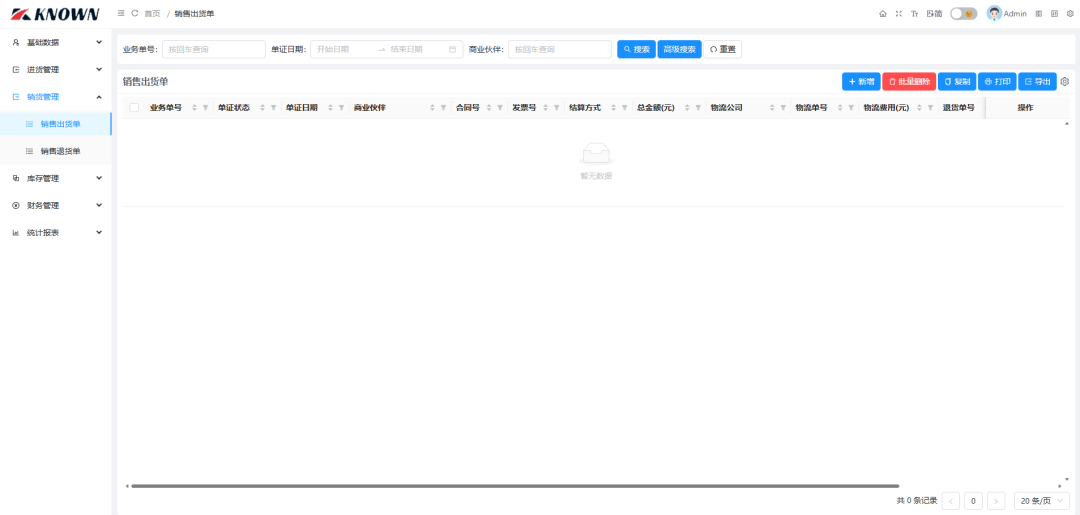 销货管理:包含销售出货单、销售退货单。